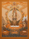 Ein wunderschöner Chenrezig wird auf diesem Thangka dargestellt. Der 1000-armige Avalokiteshvara als Sahasrabhuja Lokeshvara besticht auch noch durch die filigrane Ausführung.